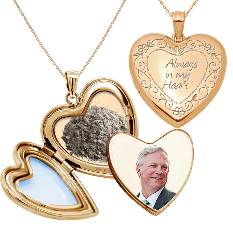 'Always in my Heart' Cremation & Hair Photo Locket