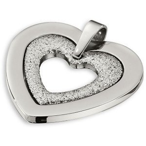 This Stainless Steel Heart Pendant comes with a Glitter Immersion Plate in either Silver or Rose which gives this pendant a beautiful unique look. This pendant can be worn with a Sterling Silver chain. This item is approximately 1 1/2" x 1 1/2".