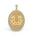 This medal is available in a 1 Inch x 1 1/4 Inch ; and comes in solid 14k Yellow or White gold.
