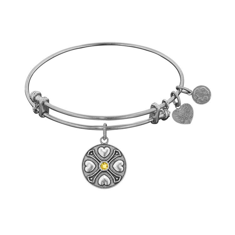 Easily adjustable bracelets with charms that let a woman show how she feels, what she believes in, and who she is.