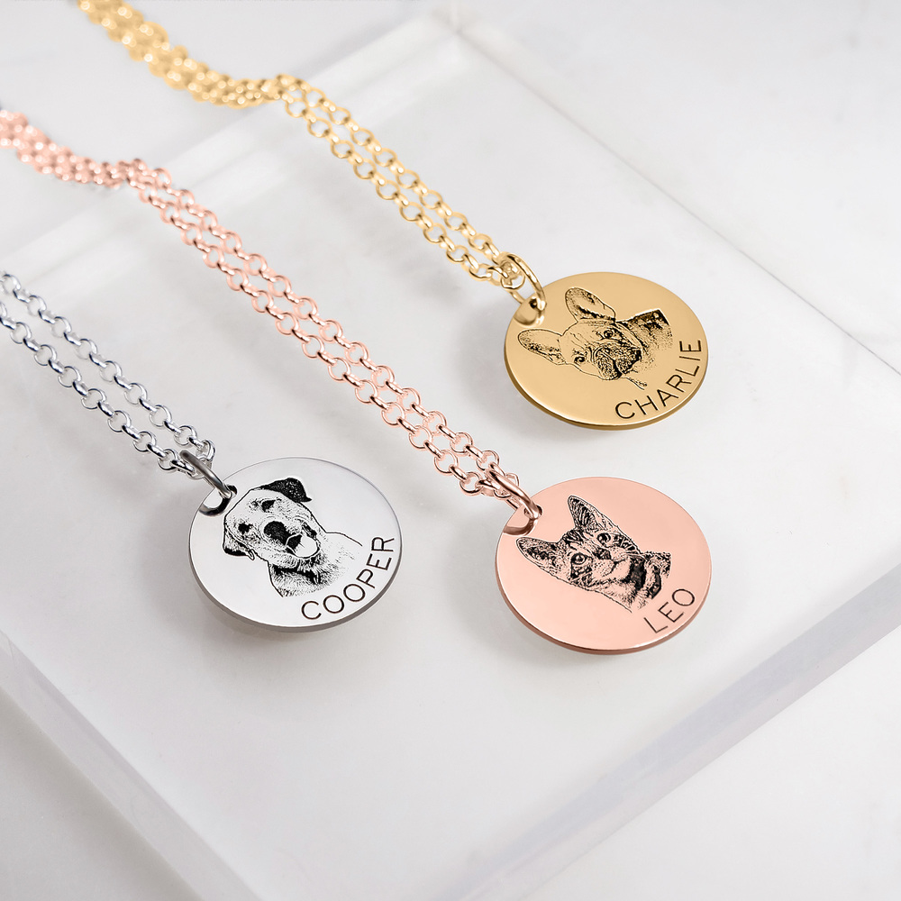 Antiqued Personalized Laser Etched Pet Portrait Pendant w/ Name