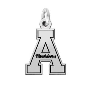 Appalachian State Mountaineers Charm made in solid sterling silver with antiqued background. Appalachian State charms can be worn on a chain or dangle them from a bracelet. Our jewelry has the finest detail and are the highest quality of any App State charm or pendant available.
