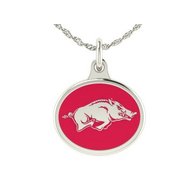 Arkansas Razorbacks Charm made in solid sterling silver with enameled background. Arkansas charms can be worn on a chain or dangle them from a bracelet. Our jewelry has the finest detail and are the highest quality of any Razorbacks charm or pendant available. In stock for fast free shipping and if for some reason you don't like it? Send the charm back for a full refund.