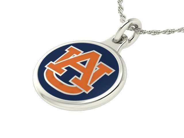 Auburn TIGERS Charm pendant necklace made in solid sterling silver with school color background. Auburn charms can be worn on a chain or dangle them from a bracelet. Our jewelry has the finest detail and are the highest quality of any TIGERS charm or pendant available. In stock for fast free shipping and if for some reason you don't like it? Send the charm back for a full refund.