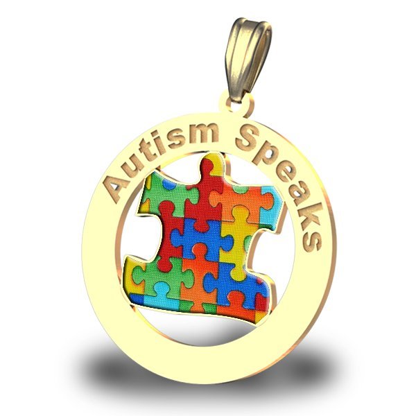 Autism Awareness Round Coutout Color Puzzle Piece Pendant