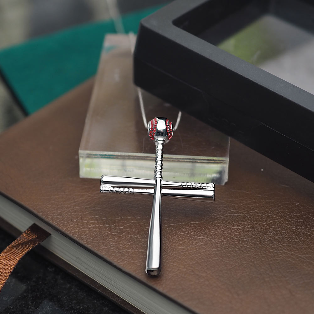 This baseball cross is meant to represent both faith and baseball. The cross is made up of three bats which are meant to symbolize God, the father and the holy spirit which allows the wearer to show their faith on and off the field.
