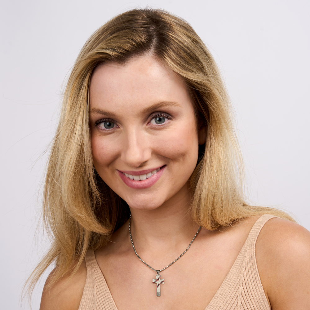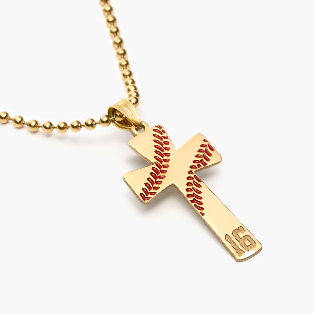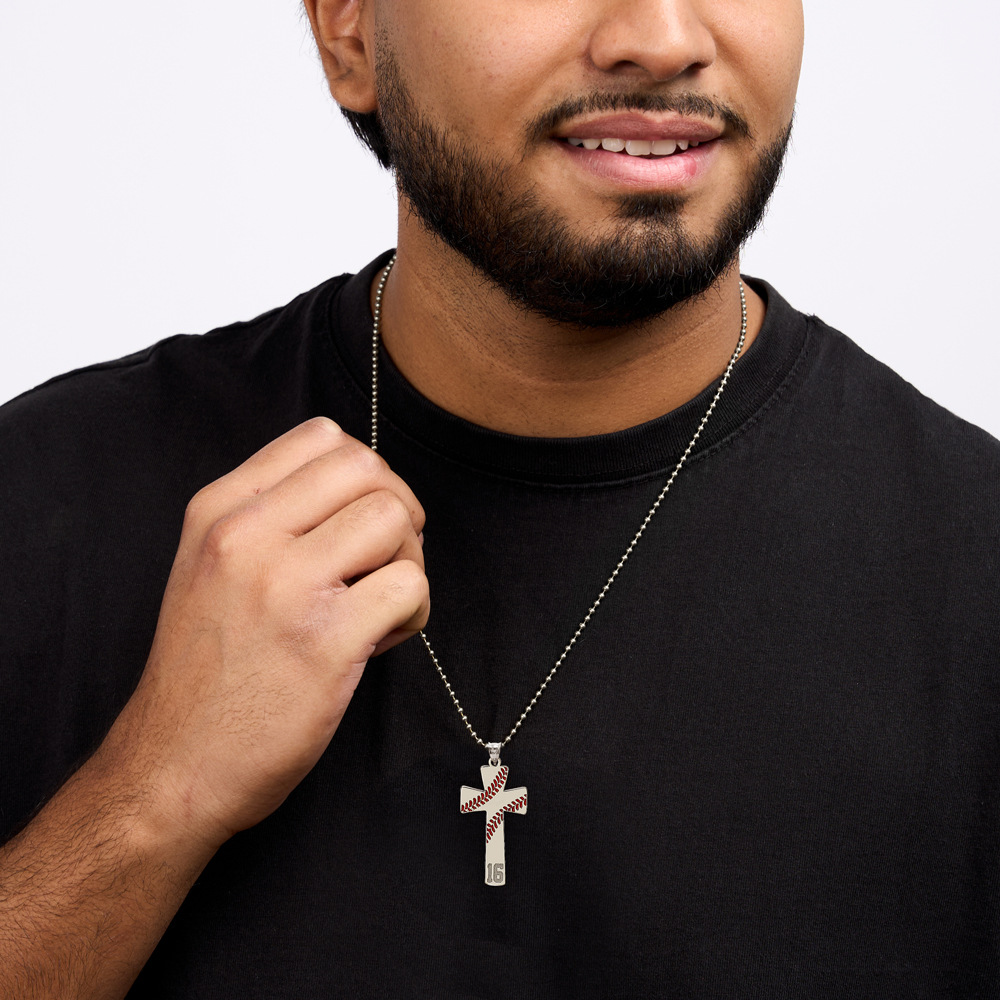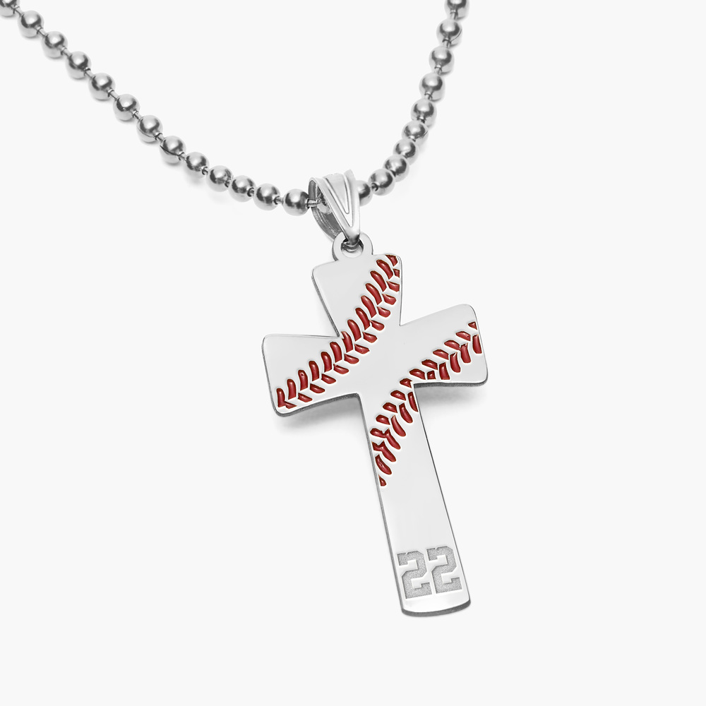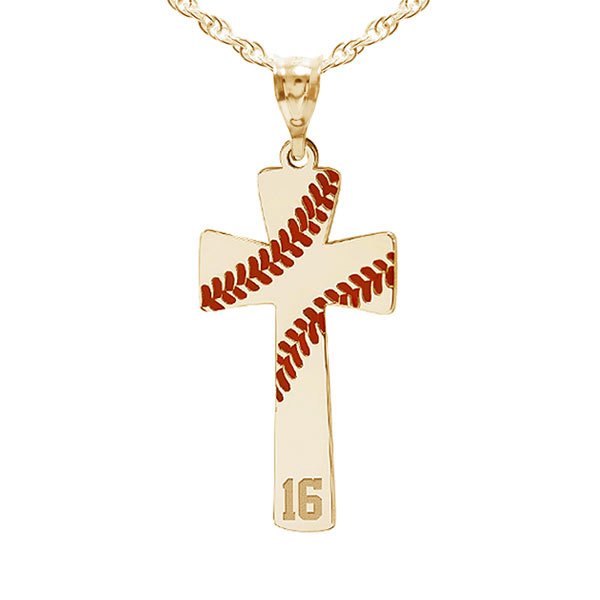 Baseball Stitch Enameled Cross Pendant w/ Number