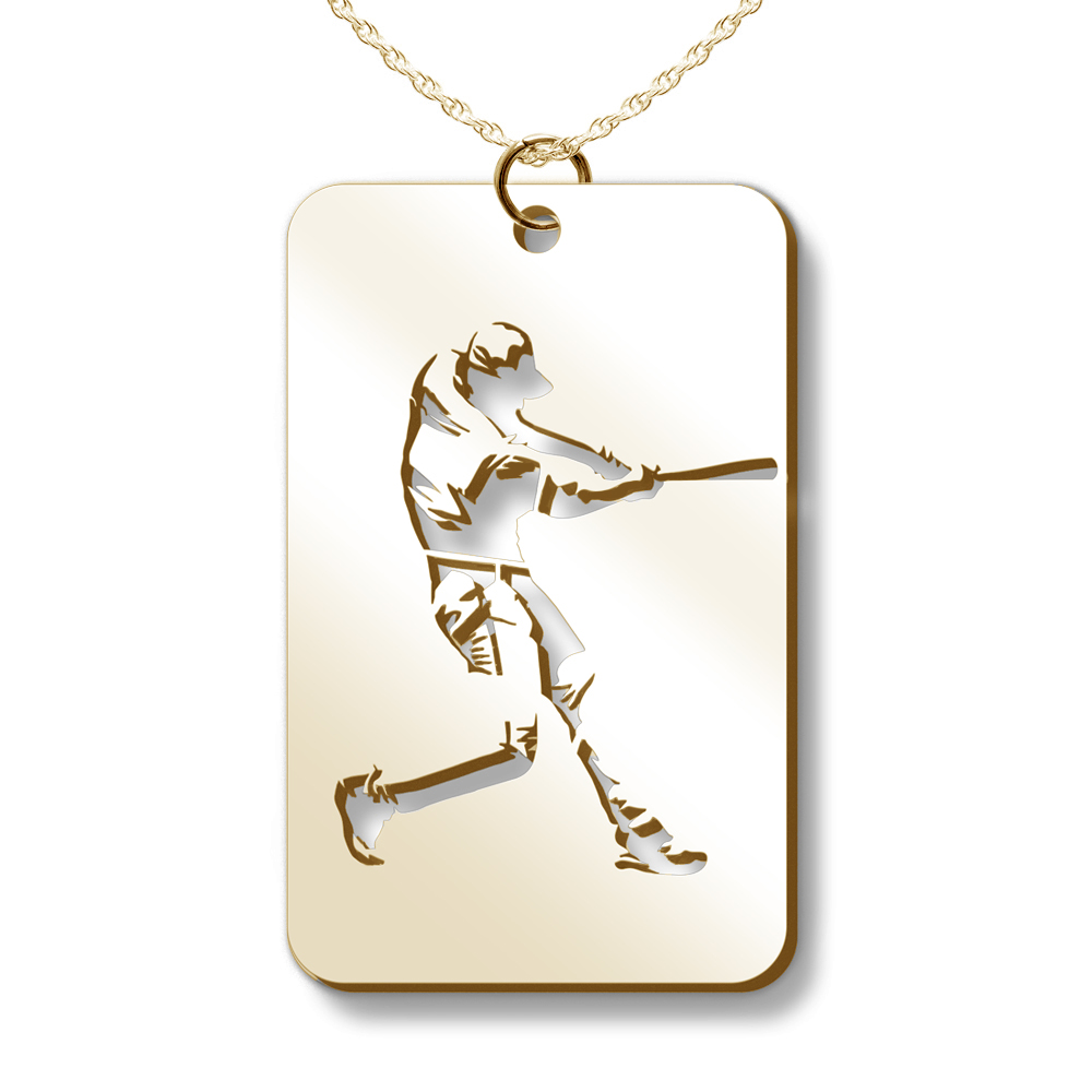 Represent your favorite sport and accessorize with the Baseball Swing Cut-out Rectangle Pendant! Perfect for sports fans and jewelry lovers alike, this pendant is the perfect accessory to put you in the game. This stunning piece of jewelry is great for any fan and promises to make a statement with its distinctive cut out design. Perfect for anyone who wants to show their love of the sport. A must-have for any baseball fan.