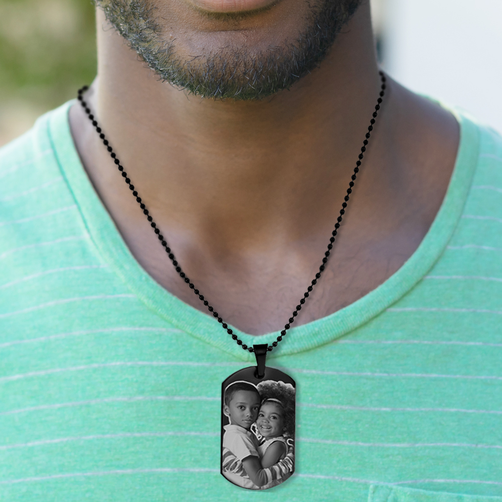 Black Stainless Steel Laser Photo Dog Tags