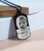This stunning dog tag is laser engraved on the front side with your photo! The black finish allows for a holographic photo finish.