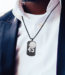 Dog Tag is the size of an actual military dog tag which is 1 1/4 Inch x 2 Inches