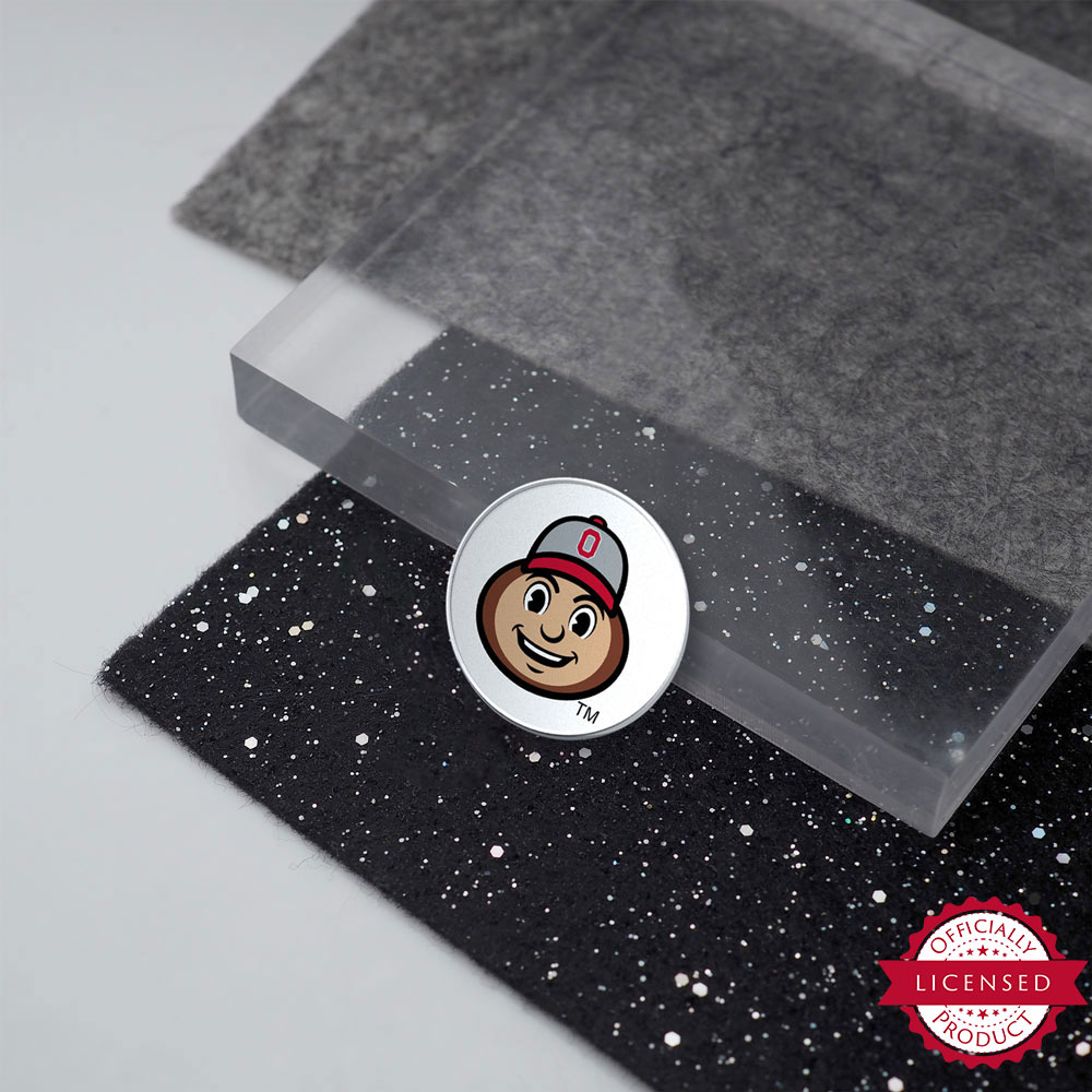 GO BUCKEYES! What better way is there to display your team pride than with this colorful golf ball marker featuring