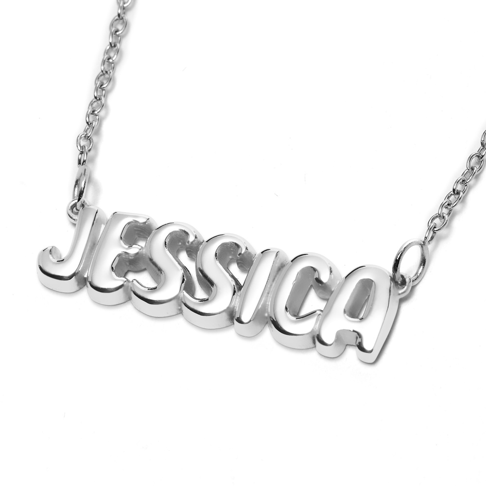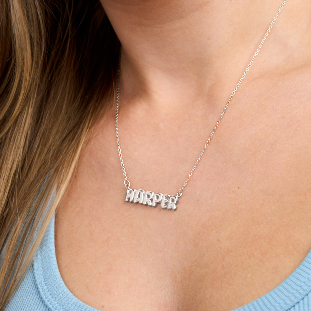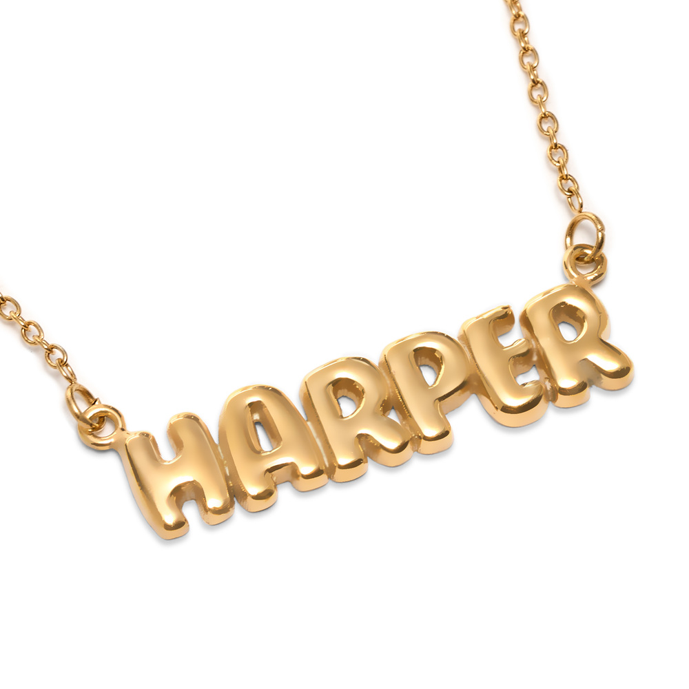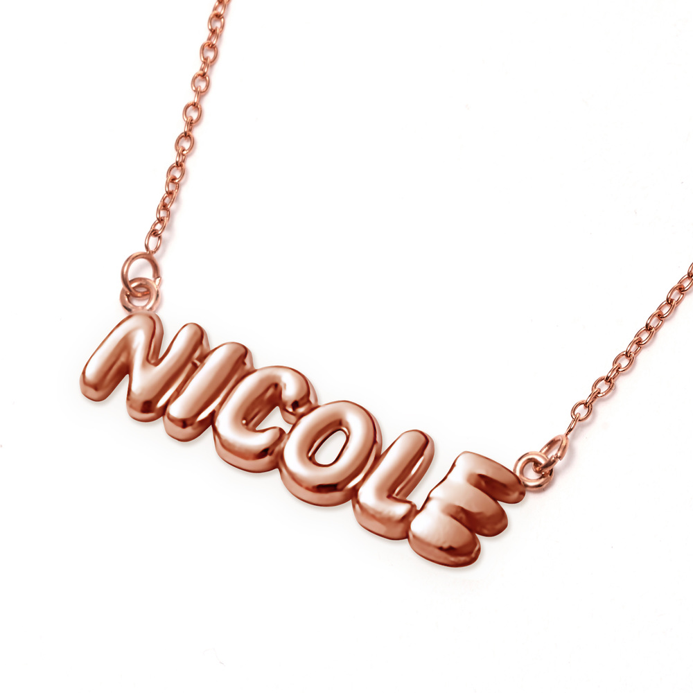 Our trendy bubble name necklace on an adjustable chain is customizable piece of jewelry that features a person's name in