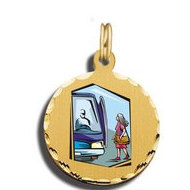 3/4" x 3/4" Round Charm. Comes complete with a durable "Split Ring" to fasten the charm to your own charm bracelet
