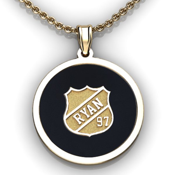Your custom sports pendant is available in 2 sizes and in 14K Solid Yellow Gold, 14K Solid White Gold, Or Sterling Silver. Most can handle a name, team name,