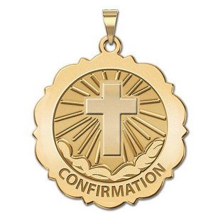 Confirmation Scalloped Round Religious Medal - Cross "EXCLUSIVE"