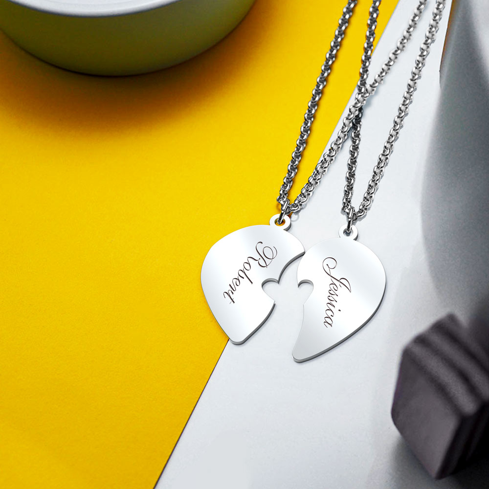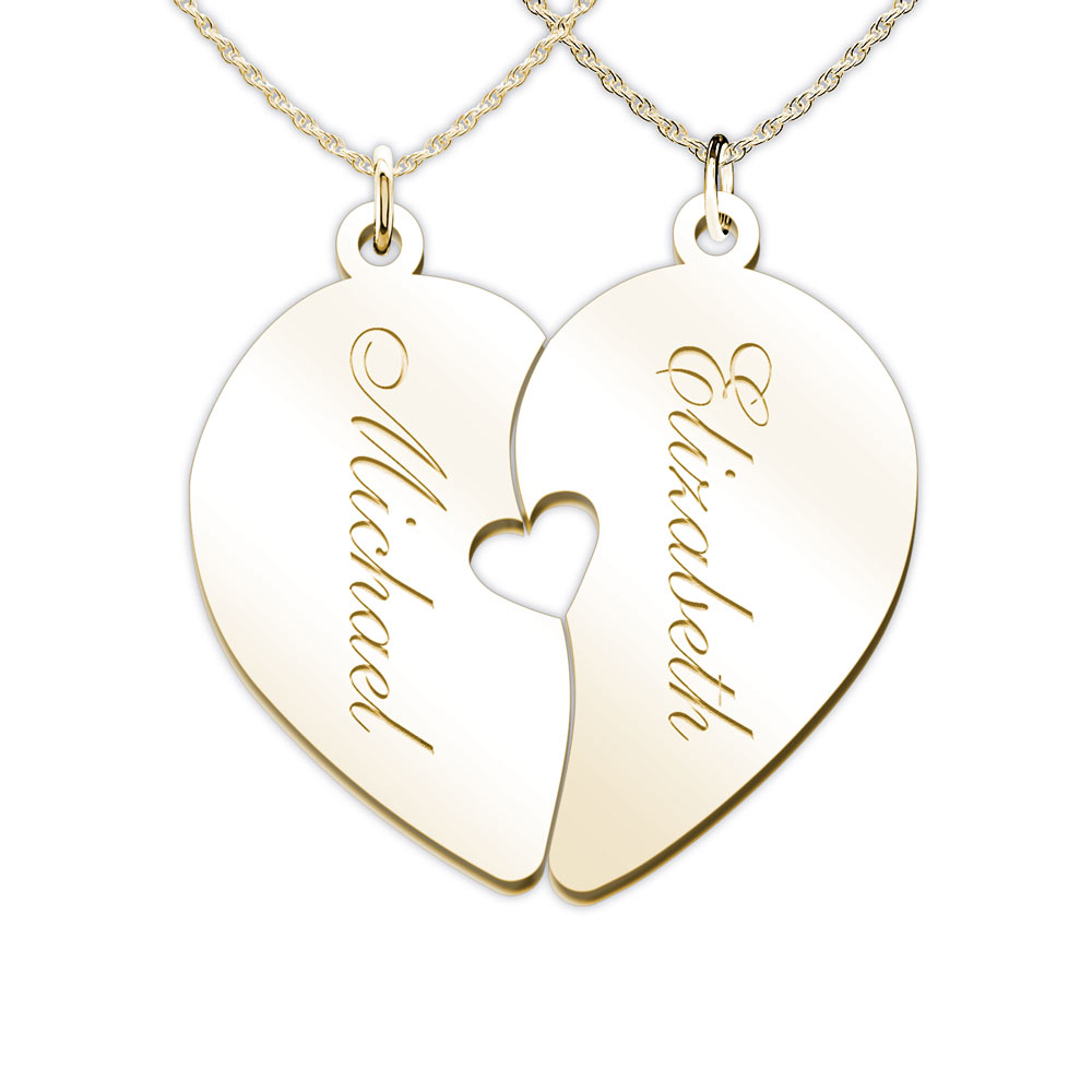 This beautiful Couple's Engravable Two Halves of One Heart Pendant is the ideal gift for the one you love. Available in Sterling Silver, Gold Plated, Rose Gold Plated and 14K Yellow and White Gold this will be sure to bring a smile to anyone's face. Perfect present for Valentine's Day, Mother's Day, Christmas, Birthdays or just because.