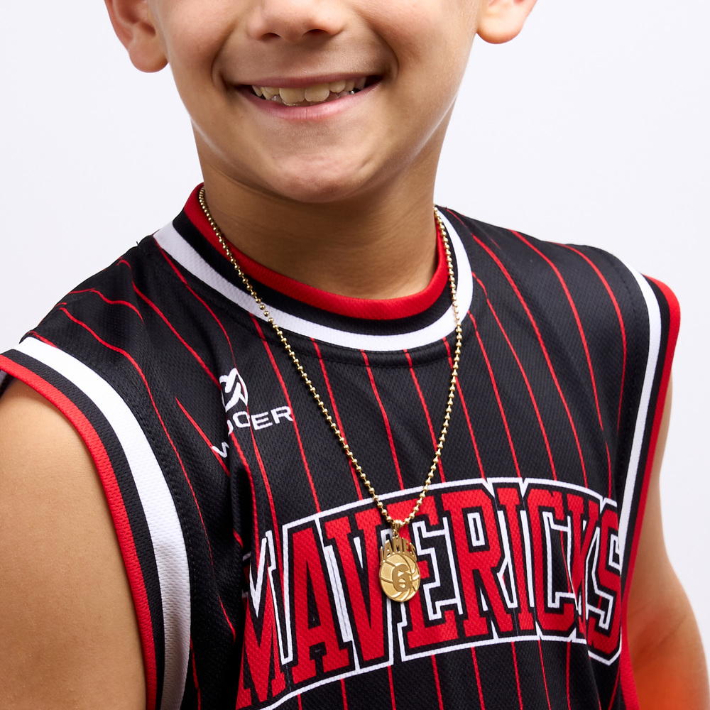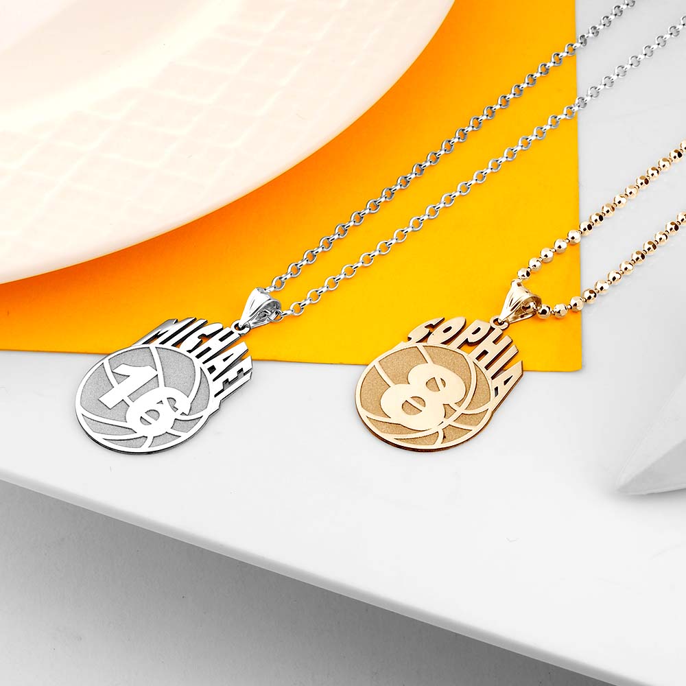 Your custom sports pendant is available in 2 sizes and in 14K Solid Yellow Gold, 14K Solid White Gold, Or Sterling Silver. Most can handle a name, team name, and even the number the players wear.