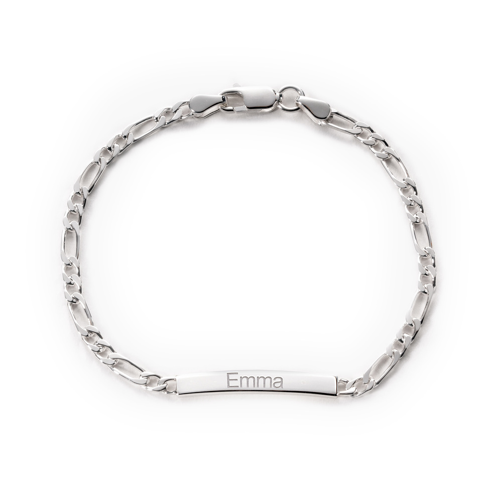 Custom Engraved Sterling Silver Figaro Link ID Bracelet