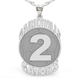 Your custom sports pendant is available in 2 sizes and in 14K Solid Yellow Gold, 14K Solid White Gold, Or Sterling Silver. Most can handle a name, team name, and even the number the players wear.