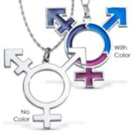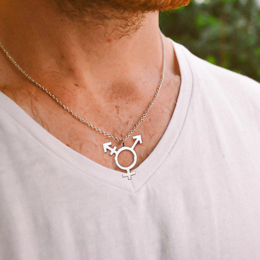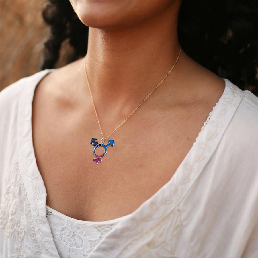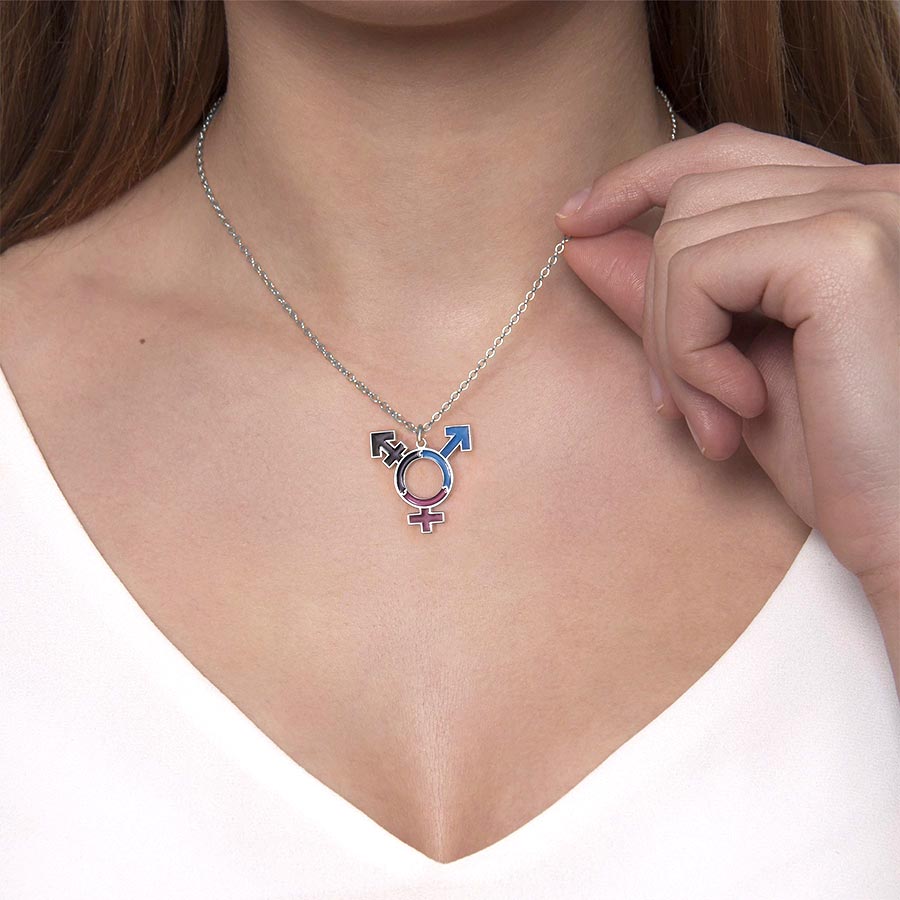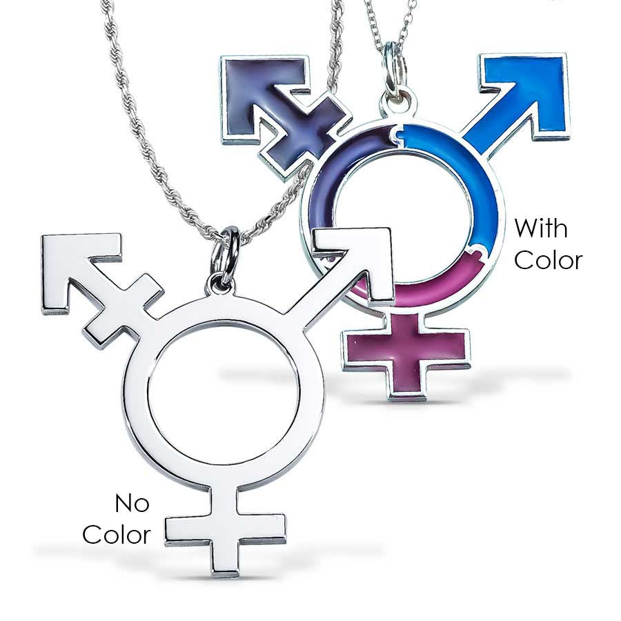 This beautiful trangender symbol necklace is available in two styles - with or without color enamel.
