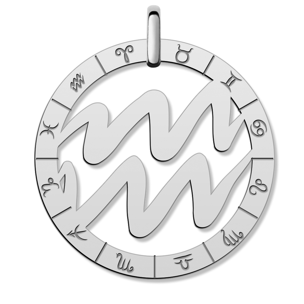 Cutout Round Aquarius Symbol Charm or Pendant