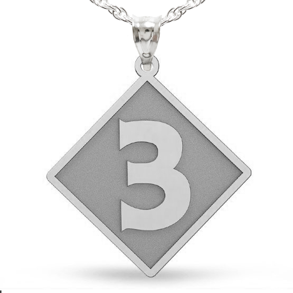 1, 2, or 3 numbers can fit on this Diamond Style Pendant. Available in 14K Solid Yellow Gold, 14K Solid White Gold, Or Sterling Silver.