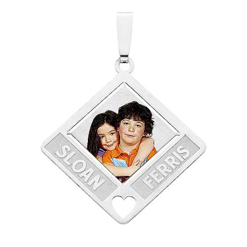 This pendant is approximately 1 Inch x 1 Inch and can be customized with names or even dates.