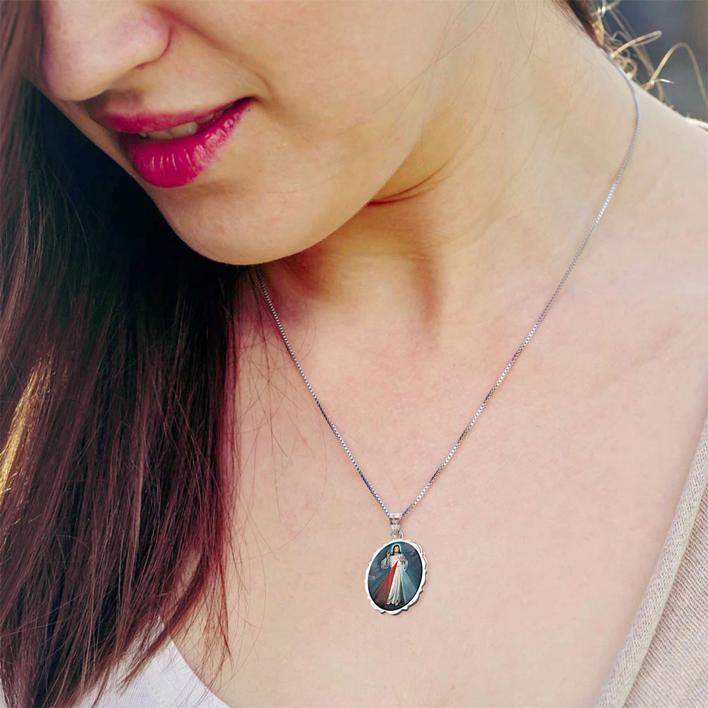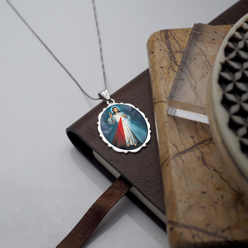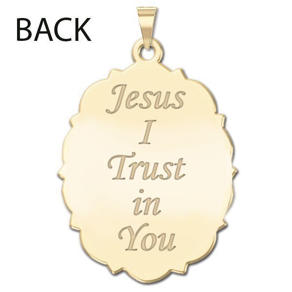 The front of the medal features the lord Jesus Christ and the back inscribes the words "Jesus I Trust In You."