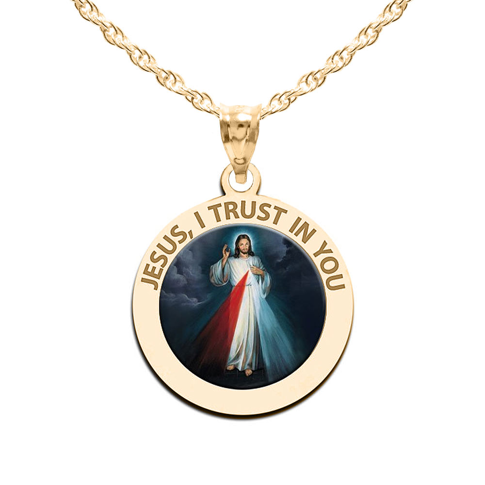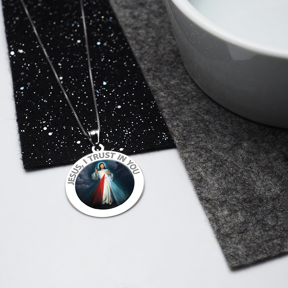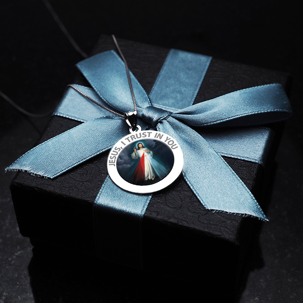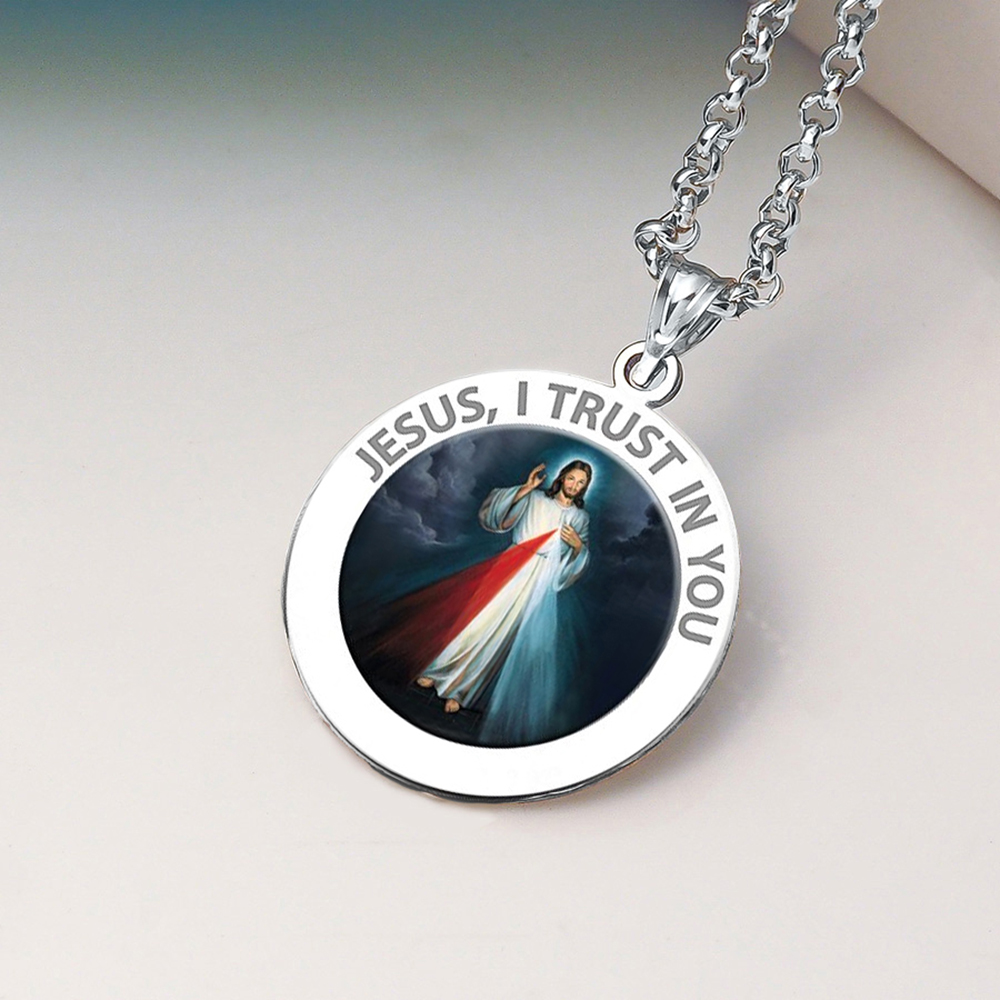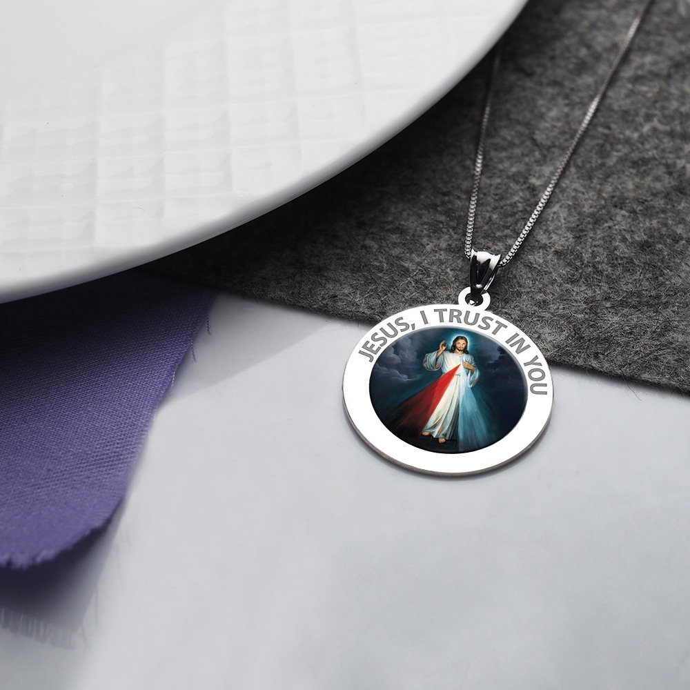 The front of the medal features the lord Jesus Christ and the back inscribes the words "Jesus I Trust In You."