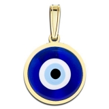 * CHAIN NOT INCLUDED * Pendants come in sizes of 1 Inch Wide x 1 Inch Tall or 3/4 Inch Wide x 3/4 Inch Tall The evil eye is a look that is believed by many cultures to be able to cause injury or bad luck for the person at whom it is directed for reasons of envy or dislike. The term also refers to the power attributed to certain persons of inflicting injury or bad luck by such an envious or ill-wishing look. The idea expressed by the term causes many cultures to pursue protective measures against it. The concept and its significance vary widely among different cultures, primarily the Middle East. The idea appears several times in translations (Tirgumim) of the Old Testament. It was a widely extended belief between many Mediterranean tribes and cultures: It started in Classical Greece and later passed to ancient Rome