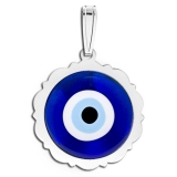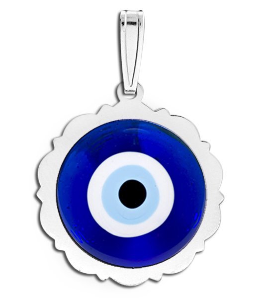 * CHAIN NOT INCLUDED * Pendants come in sizes of 1 Inch Wide x 1 Inch Tall or 3/4 Inch Wide x 3/4 Inch Tall The evil eye is a look that is believed by many cultures to be able to cause injury or bad luck for the person at whom it is directed for reasons of envy or dislike. The term also refers to the power attributed to certain persons of inflicting injury or bad luck by such an envious or ill-wishing look. The idea expressed by the term causes many cultures to pursue protective measures against it. The concept and its significance vary widely among different cultures, primarily the Middle East. The idea appears several times in translations (Tirgumim) of the Old Testament. It was a widely extended belief between many Mediterranean tribes and cultures: It started in Classical Greece and later passed to ancient Rome