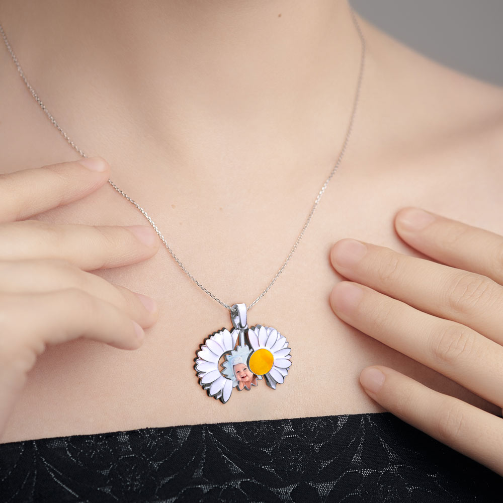 Exclusive Enameled Daisy Photo Necklace & Chain