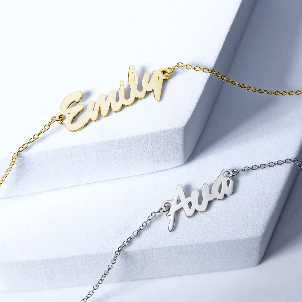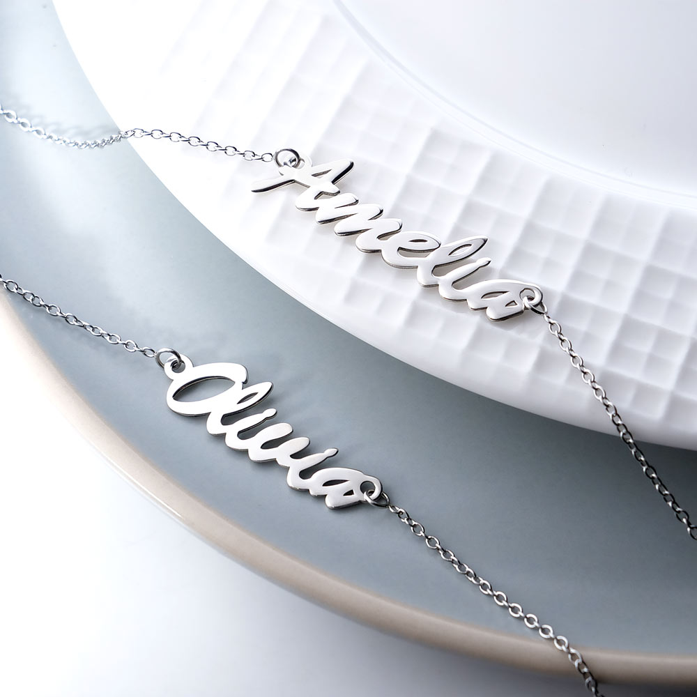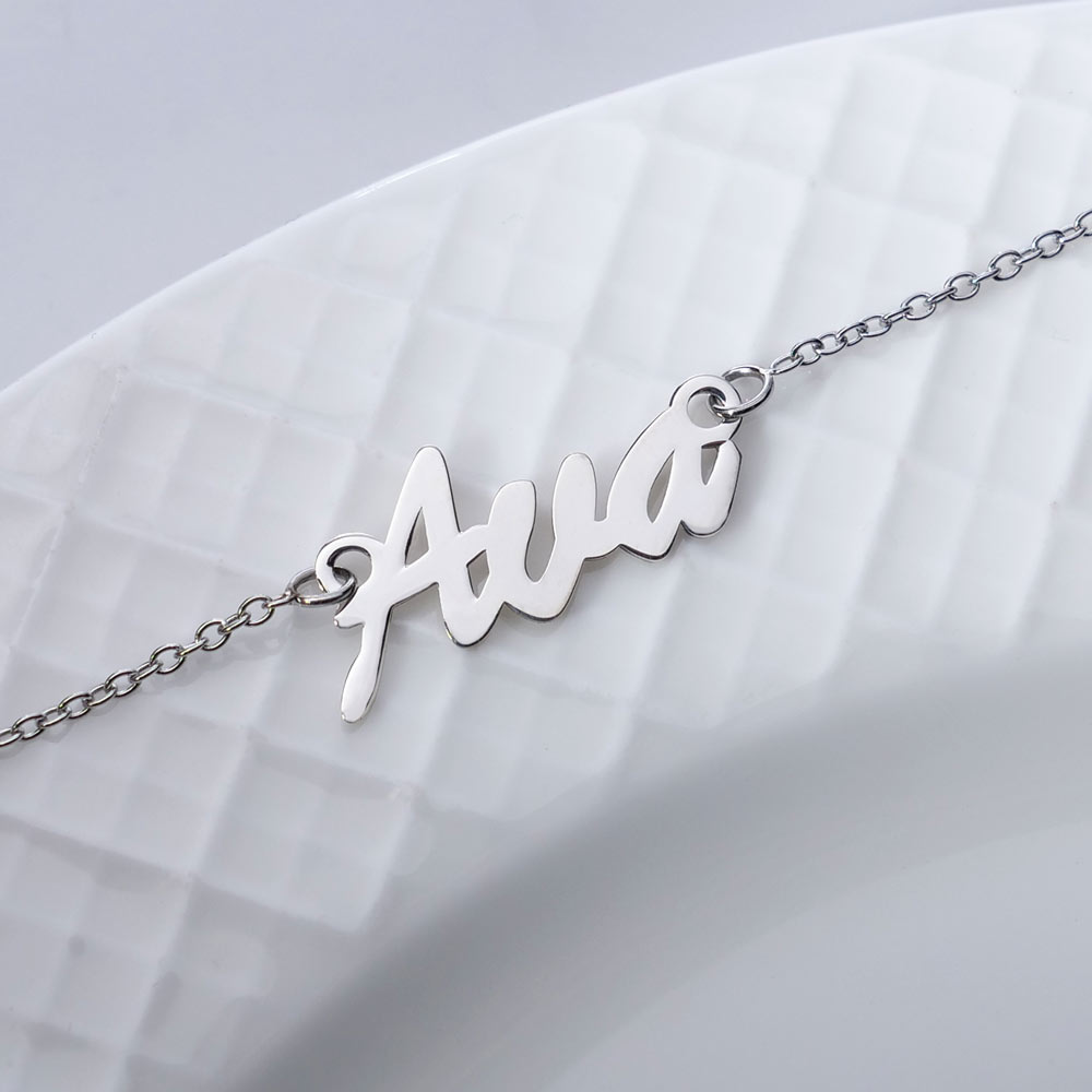 Introducing our Personalized Modern Script Name Bracelet, a stunning accessory that combines elegance and individuality. This exquisite bracelet features a delicate design with the name or word of your choice in modern script. Created with attention to detail, this bracelet is made to order, allowing you to personalize it with your own name or a special word that holds meaning to you. The metal finish adds a touch of luxury, making it a perfect statement piece for any occasion. Whether you want to treat yourself or surprise a loved one with a unique gift, our Personalized Modern Script Name Bracelet is a timeless choice that will be cherished for years to come. Embrace your personal style and make a statement with this elegant and meaningful accessory.