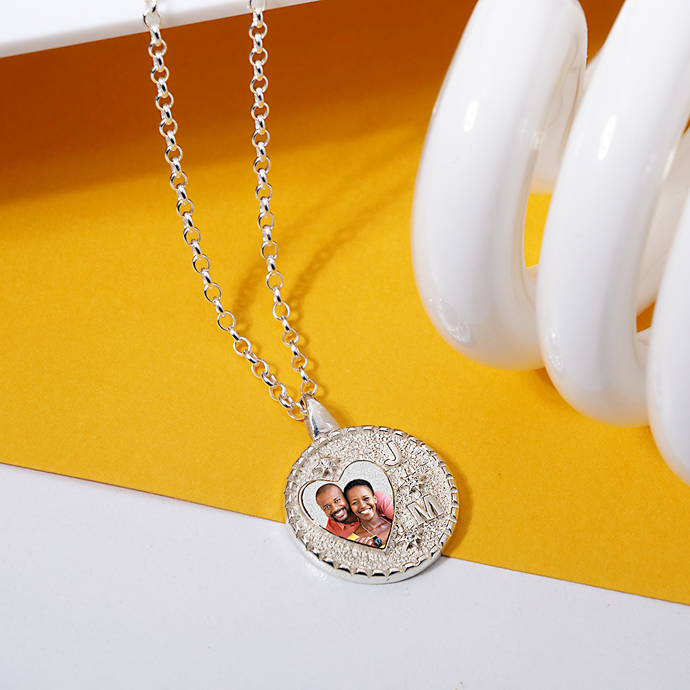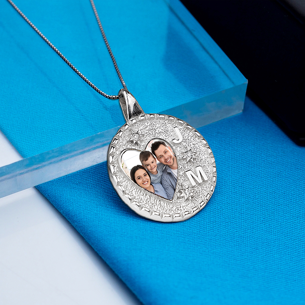 This pendant offers a keepsake that can cater to several customization details in one pendant! You may have a photo and the initials you want on the front plus a space on the reverse side for a personalized text engraving!