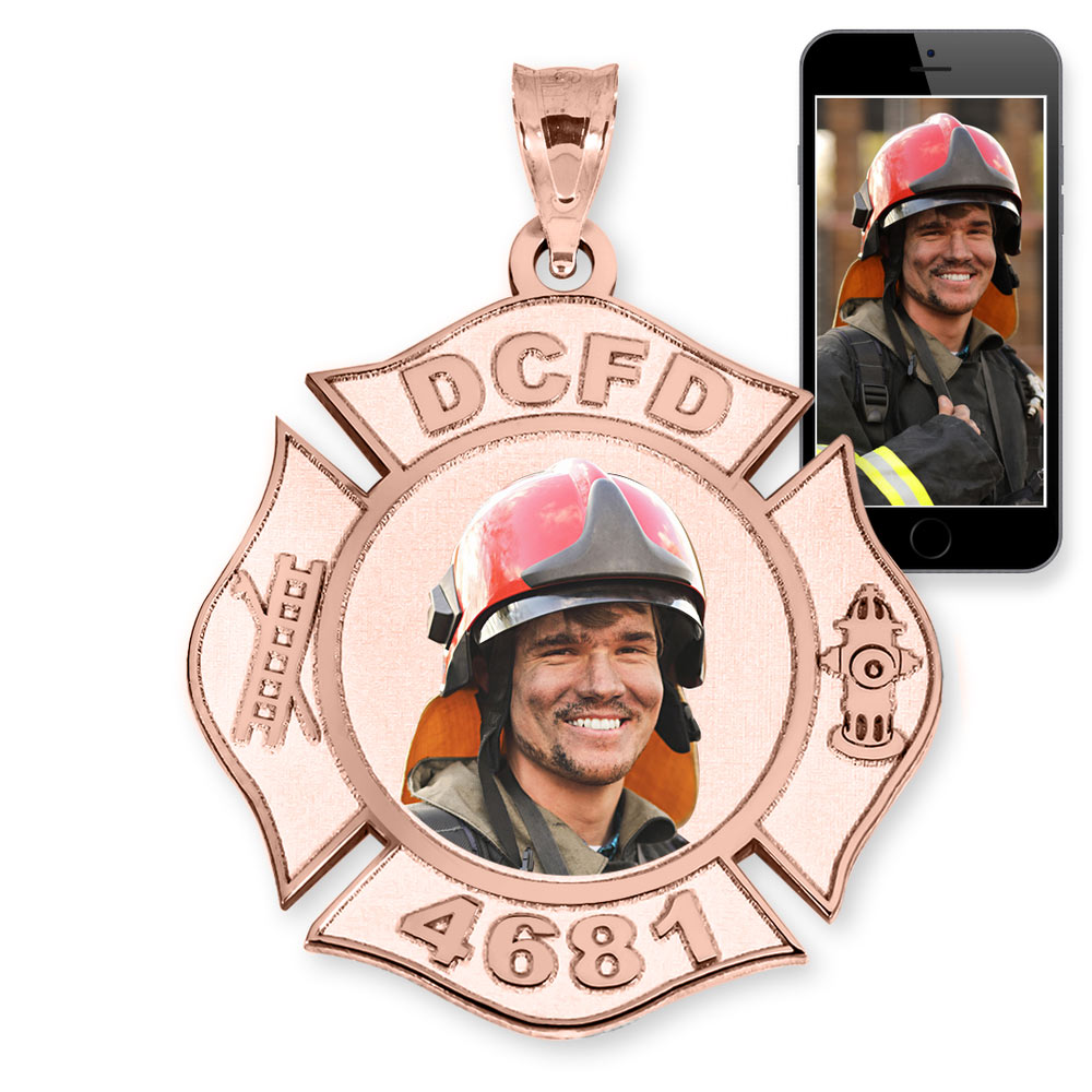 Fire Fighter Badge Photo Pendant Picture Charm with Name and Number