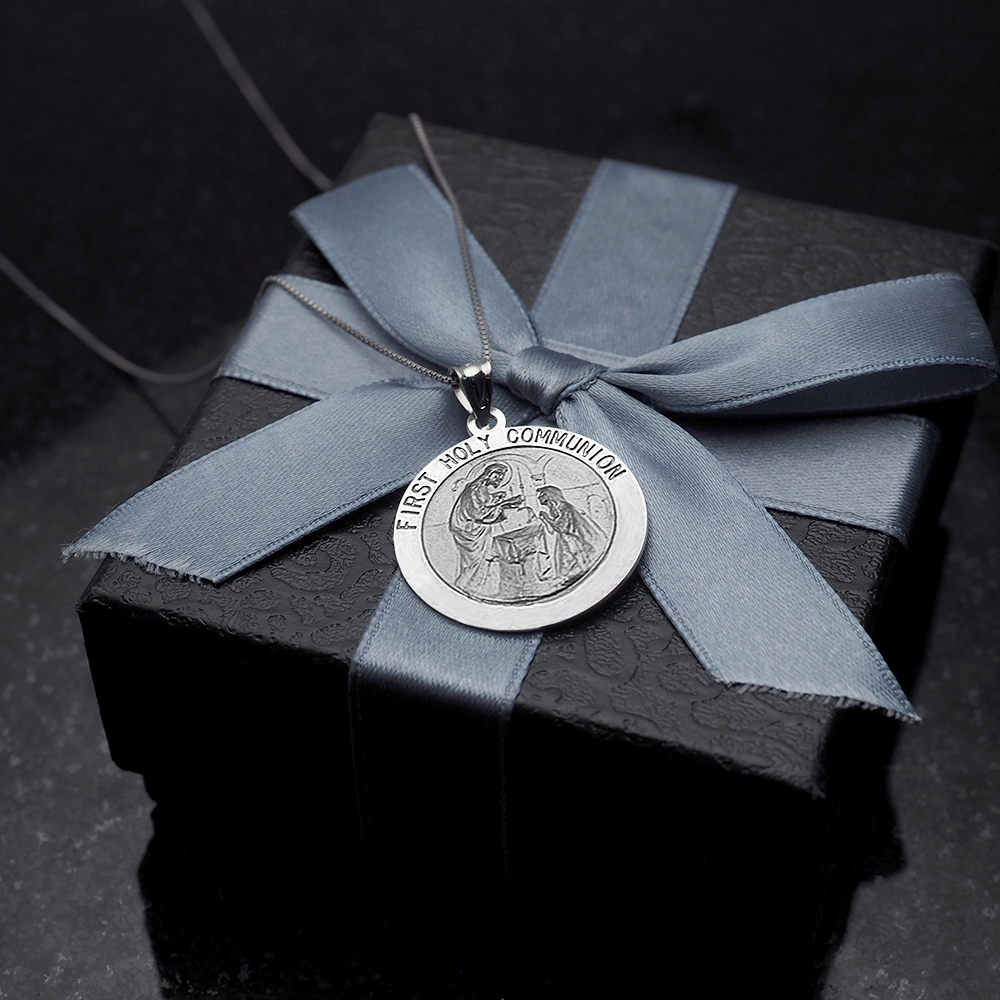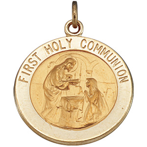The Sacrament of the Body and Blood of Jesus. This 14K Solid Gold medal celebrates receiving Jesus for the first time.