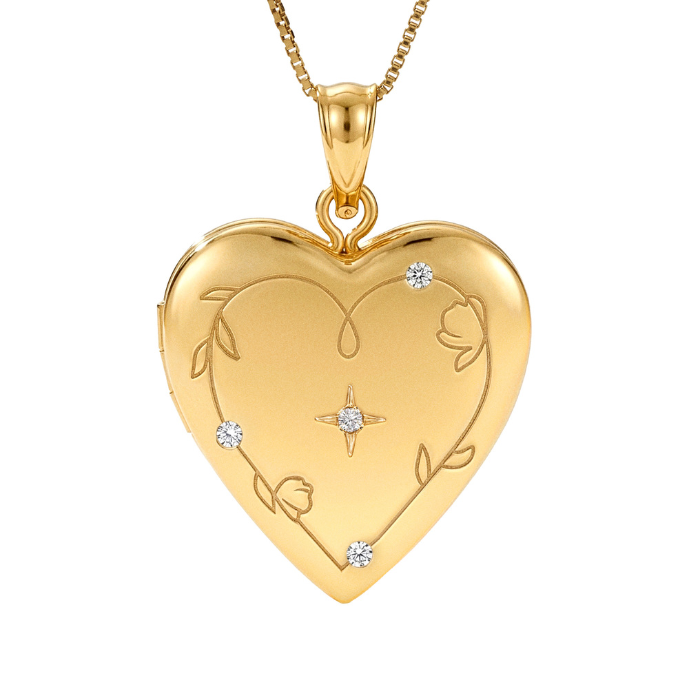 Floral Engraved Heart Locket with Starburst Diamond