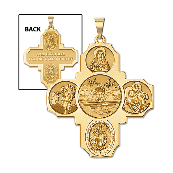 Four Way Cross - Swimming Male Religious Medal "EXCLUSIVE"