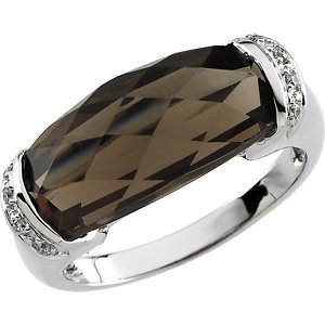 This beautiful ring comes with a 17x8 mm Checkerboard Genuine Smoky Quartz. It also has .04 carats of diamonds. This ring weighs approximately 3.48 grams *Ring available in 14K White Gold