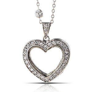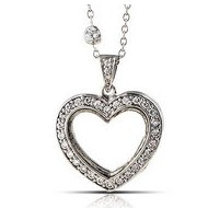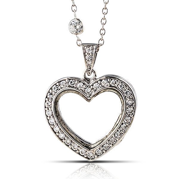 Genuine Sterling Silver Cubic Zirconia Heart Grand Glass Charm Locket