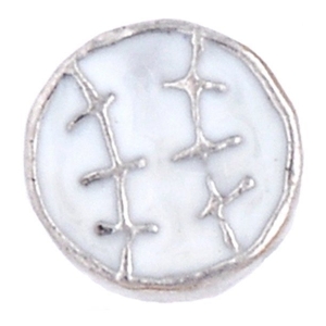 Glass Charm Locket White Enameled Baseball Charm