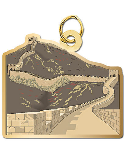 Great Wall of China Charm is approximately 1/2" X 1/2". If a charm is very long then the longer part will be 1/2" inch. 1/2" is around the size of a Dime. Charm includes a split ring so you can easily attach a charm bracelet.