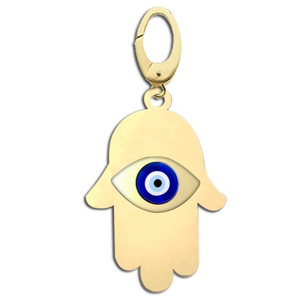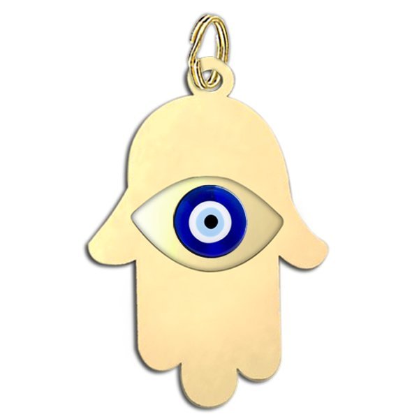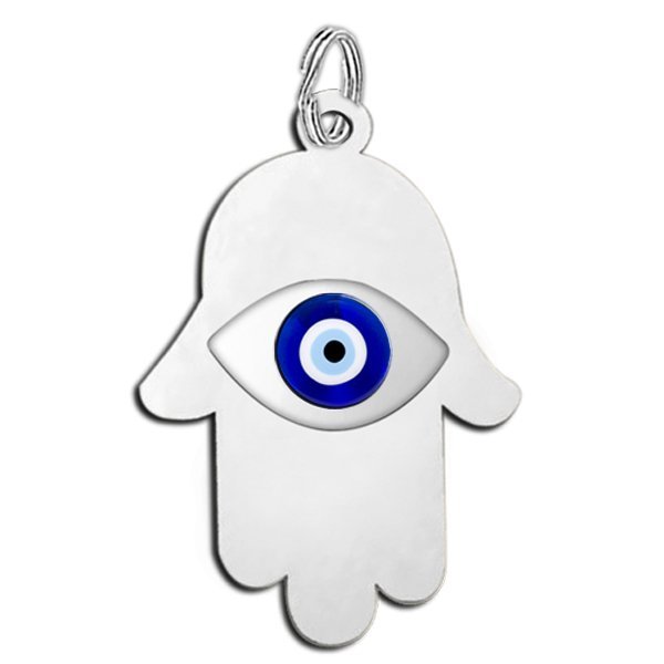 The hamsa (Arabic: , Hebrew: , also romanized khamsa, meaning lit. five),hand of Fatima or the hand of Miriam) is a palm-shaped amulet popular throughout the Middle East and North Africa. The hamsa is often incorporated in jewellery and wall hangings as a superstitious defense against the evil eye.