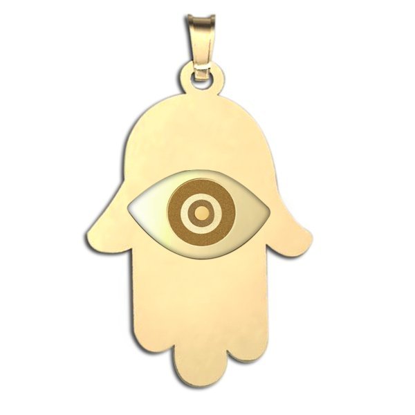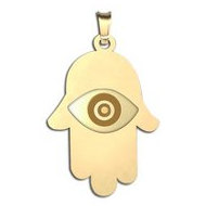The hamsa (Arabic: , Hebrew: , also romanized khamsa, meaning lit. five),hand of Fatima or the hand of Miriam) is a palm-shaped amulet popular throughout the Middle East and North Africa. The hamsa is often incorporated in jewellery and wall hangings as a superstitious defense against the evil eye.
