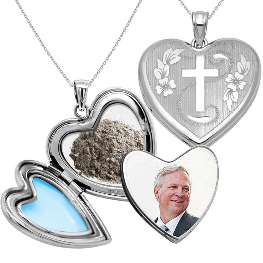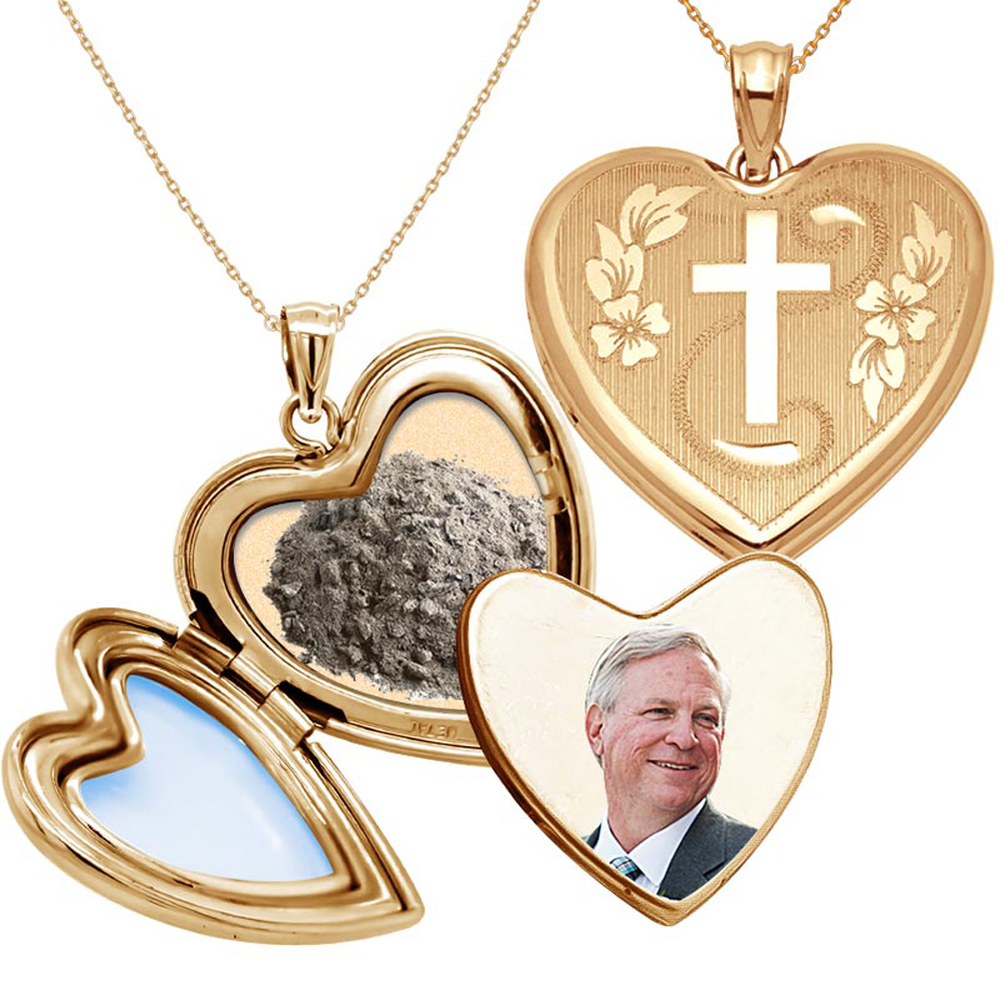 Hand Engraved Cross Cremation & Hair Photo Locket