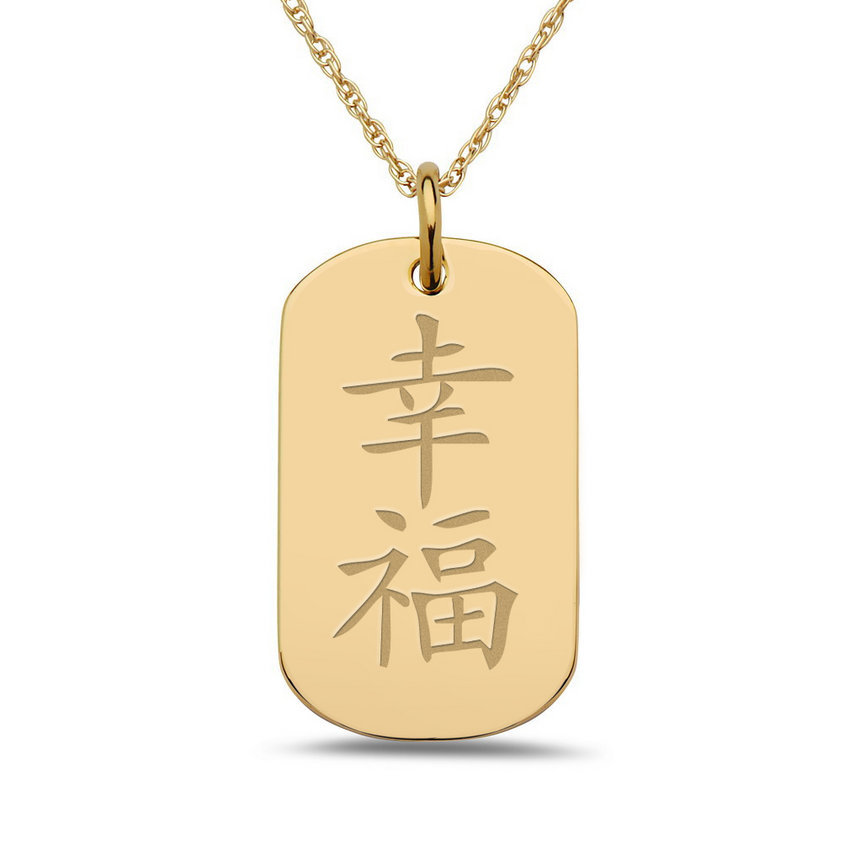 "Happiness" Chinese Symbol Dog Tag Pendant