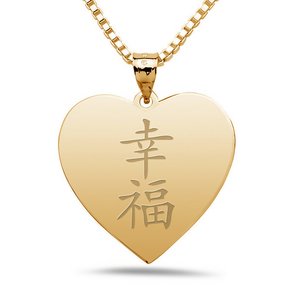 "Happiness" Chinese Symbol Heart Pendant