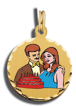 3/4" x 3/4" Round Charm. Comes complete with a durable " Split Ring" to fasten the charm to your own charm bracelet.