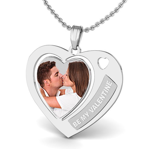 Heart Photo Pendant W/ "Be My Valentine" Etched